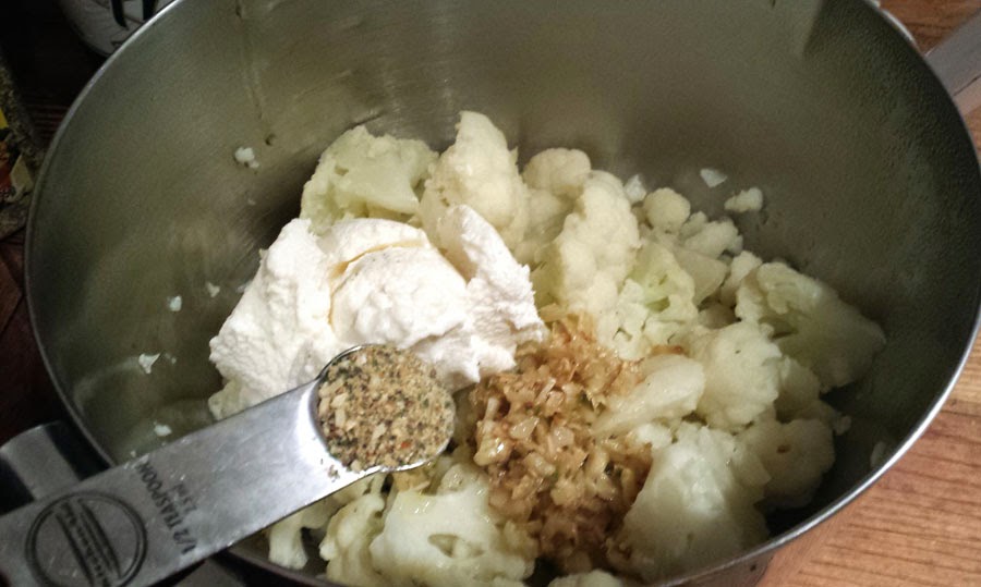 In addition to helping make a Low-Carb Pizza, some Low-Carb Taco Shells & a tasty Buffalo Wings recipe the Cauliflower also makes an awesome mock mashed potato recipe too. What is there this little vegetable CAN'T do? Let's get to the recipe...
