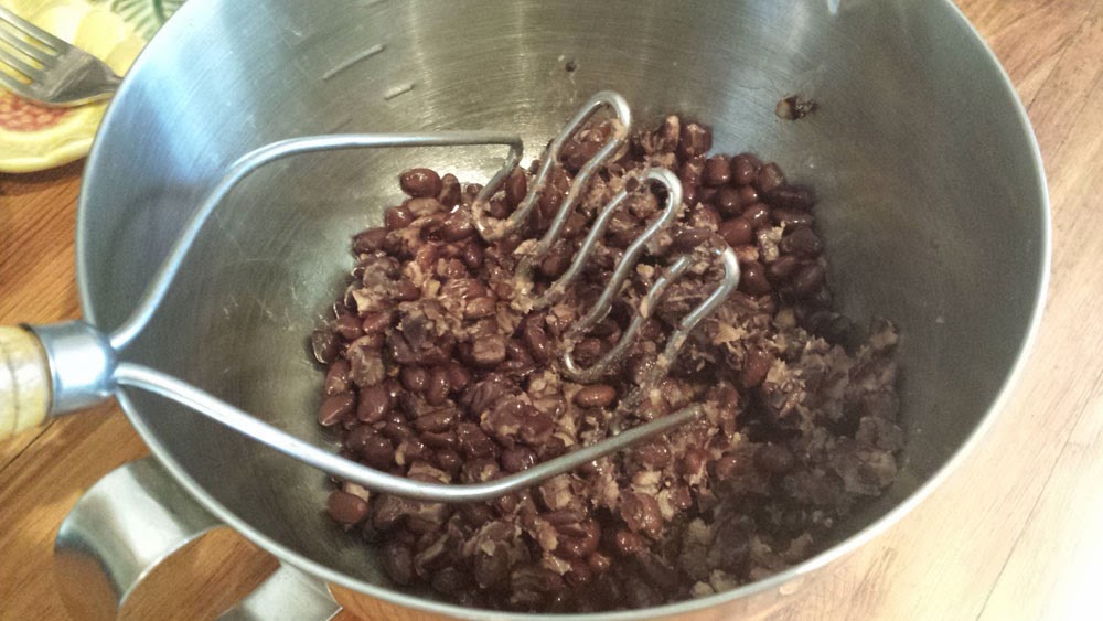 In a bowl, mash your Black beans loosely. (You can still have some whole beans)