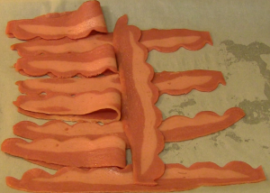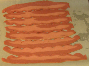 it and trace around it with a knife until you’re left with a circular bacon weave.
